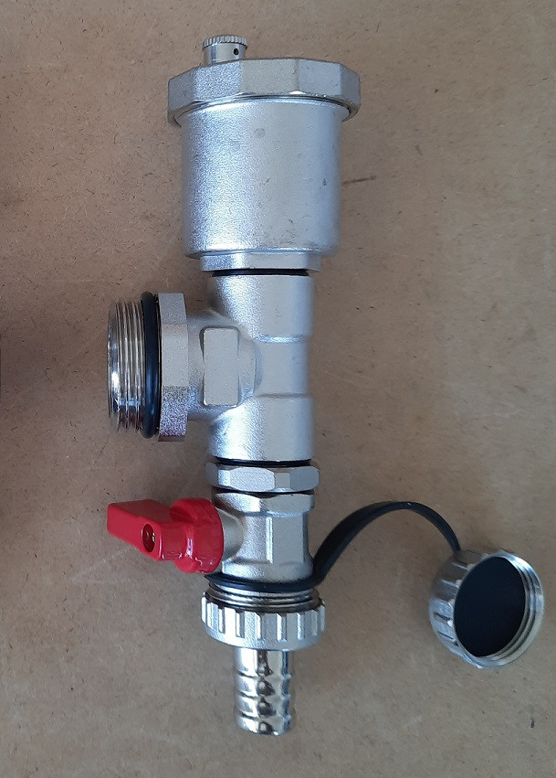 Osztóvég 1" KM, automata légtelenítővel, töltő-ürítő golyóscsappal